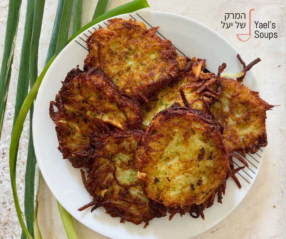 potatoes, onions, green onions, potato startch, salt, pepper. Fried in canola oil